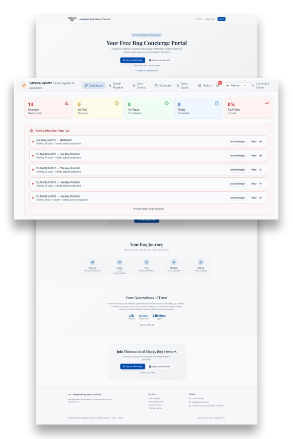Rugologist replaces disconnected spreadsheets and apps with one streamlined platform made for rug businesses. From intake to delivery, everything stays organized, trackable, and professional.